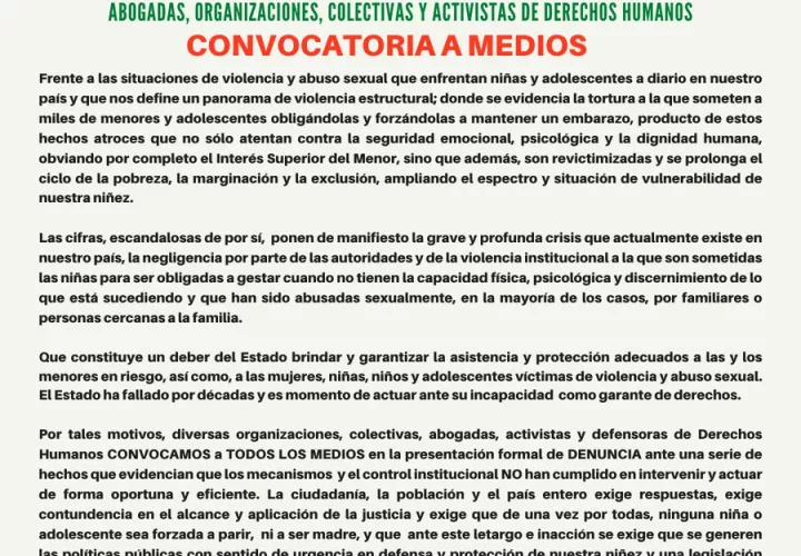De León, quien también es presidenta de la Fundación para Equidad de Género, dijo que la solicitud de esta investigación al Ministerio Público es para verificar si las autoridades (Ministerios de Educación, Salud y hospitales Santo Tomás y El Niño) cumplieron con las normativas con respecto a la atención en este caso, donde la menor fue víctima de abuso sexual y recientemente fue objeto de una cesárea forzosa para el alumbramiento.