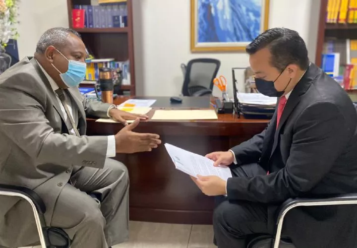 El diputado del PRD, Raúl Pineda entregó al presidente del Colegio Nacional de Abogados, Juan Carlos Arauz una copia del anteproyecto de Ley a favor de los privados de libertad que busca eliminar las penas accesorias, exceptuando los delitos contra la administración pública.