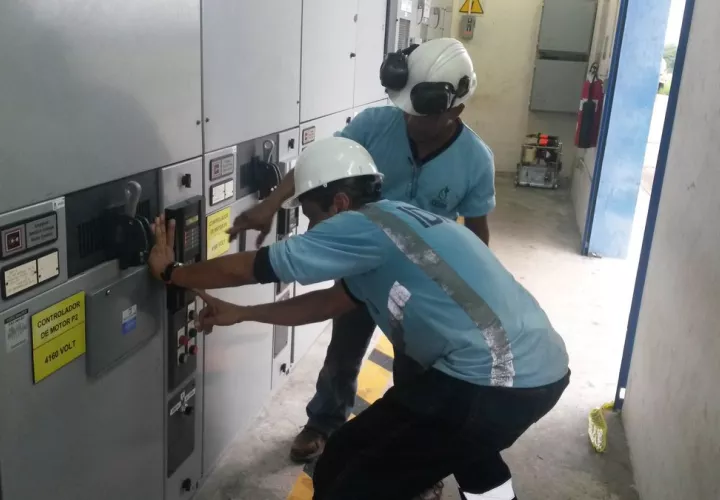 Personal de la empresa Ensa estuvo a cargo de los trabajos de la instalación de cables de alimentación de los motores en la estación de bombeo de agua tratada de la planta potabilizadora .