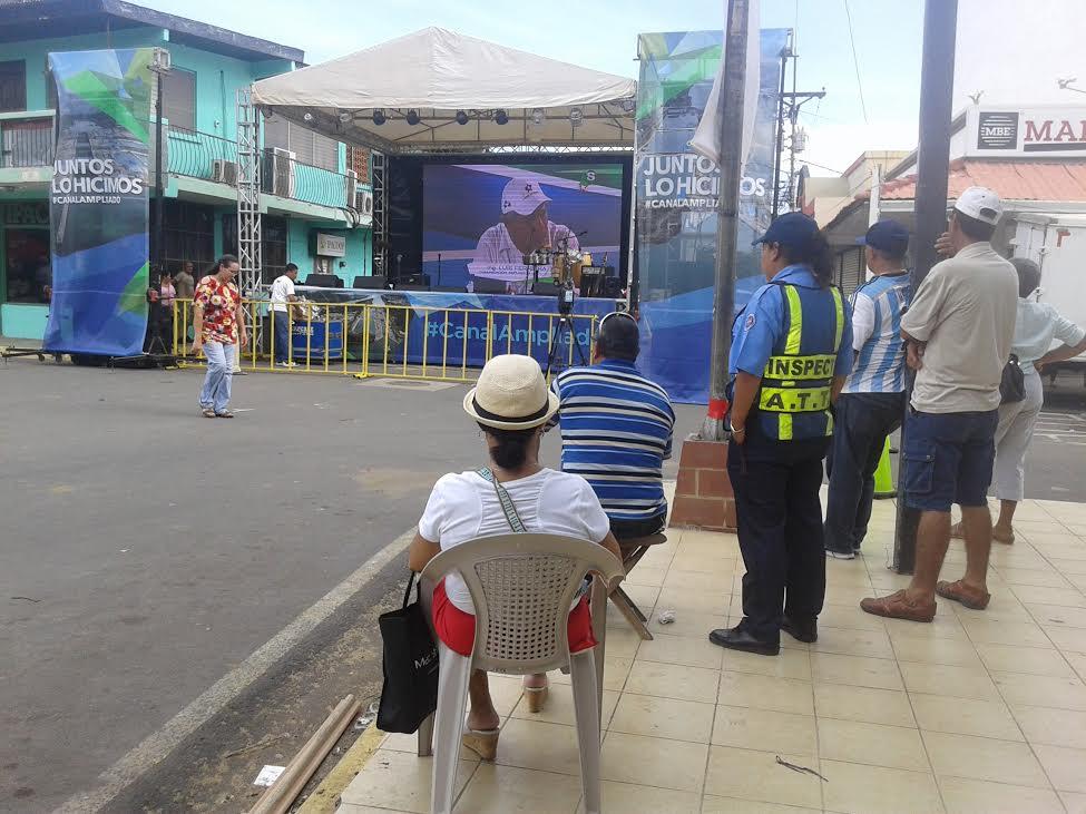 Pocas personas se han dado cita en el parque Unión de Chitré para apreciar el histórico momento del tránsito del primer buque por el Canal ampliado.