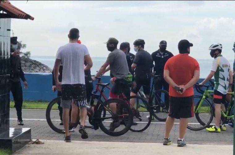 Un grupo de ciclistas fueron retenidos ayer en la Cinta Costera por la Policía Nacional, tras un operativo de verificación de salvoconductos y horarios de movilidad.
