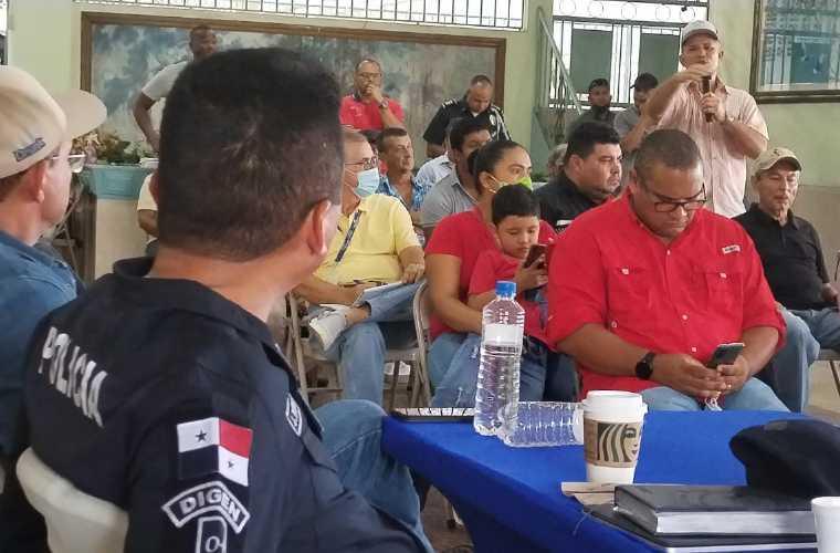 El director de la Policía Nacional, John Dornheim y Donatilo Tejada, presidente de la Asociación de Ganaderos de Panamá Oeste, dirigieron una reunión con miembros de este sector agropecuario en el distrito de La Chorrera.