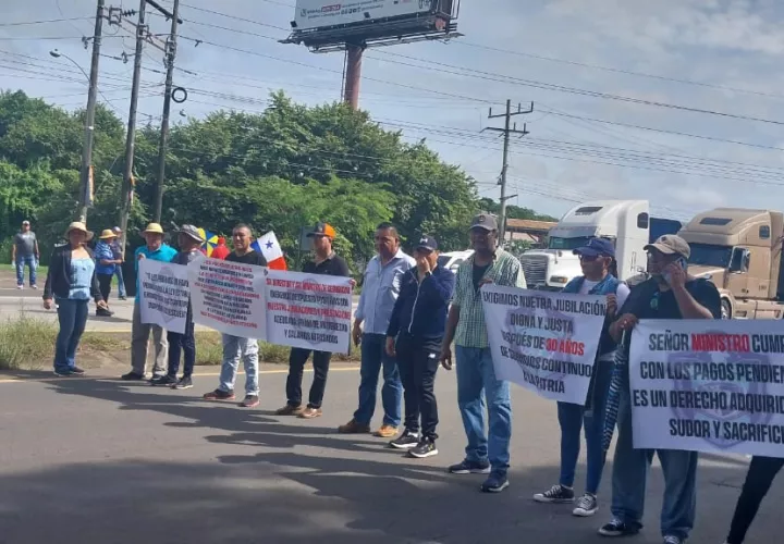 Un numeroso grupo de oficiales de la Policía Nacional en reserva, todos con el rango de capitanes, han bloqueado los cuatro carriles de la vía interamericana en Divisa.