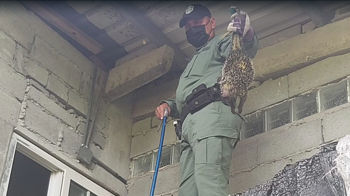 Otro rescate de vida silvestre se dio en la comunidad de Cáceres, en el distrito de Arraiján, provincia de Panamá Oeste, en donde el sargento primero Andrés Martínez, acudió al llamado por un puerco espín en el cielorraso de una vivienda.
