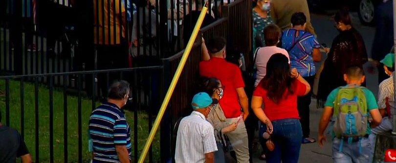 Hombres, mujeres y adultos mayores madrugaron para formar una larga fila que abarca toda la manzana de la policlínica.