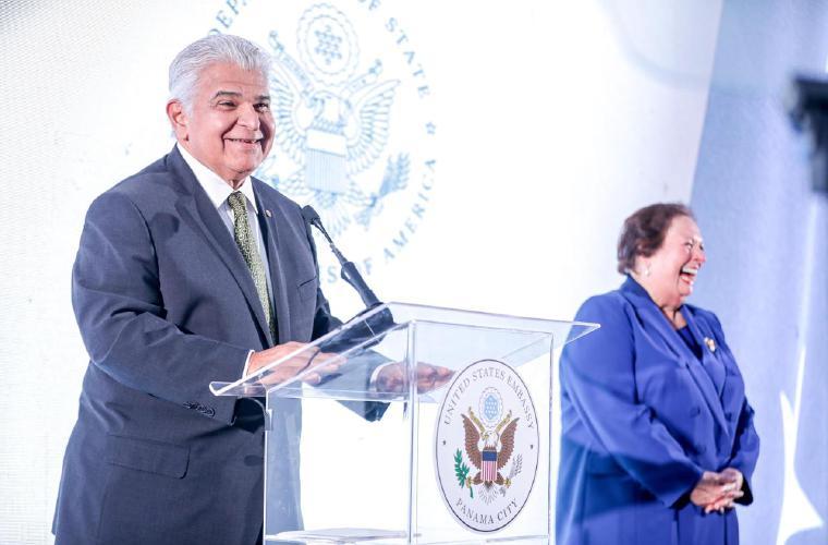 El presidente José Raúl Mulino asistió ayer al acto de celebración de los 248 años de independencia de los Estados Unidos celebrado en el Gran Salón del hotel Santa María.