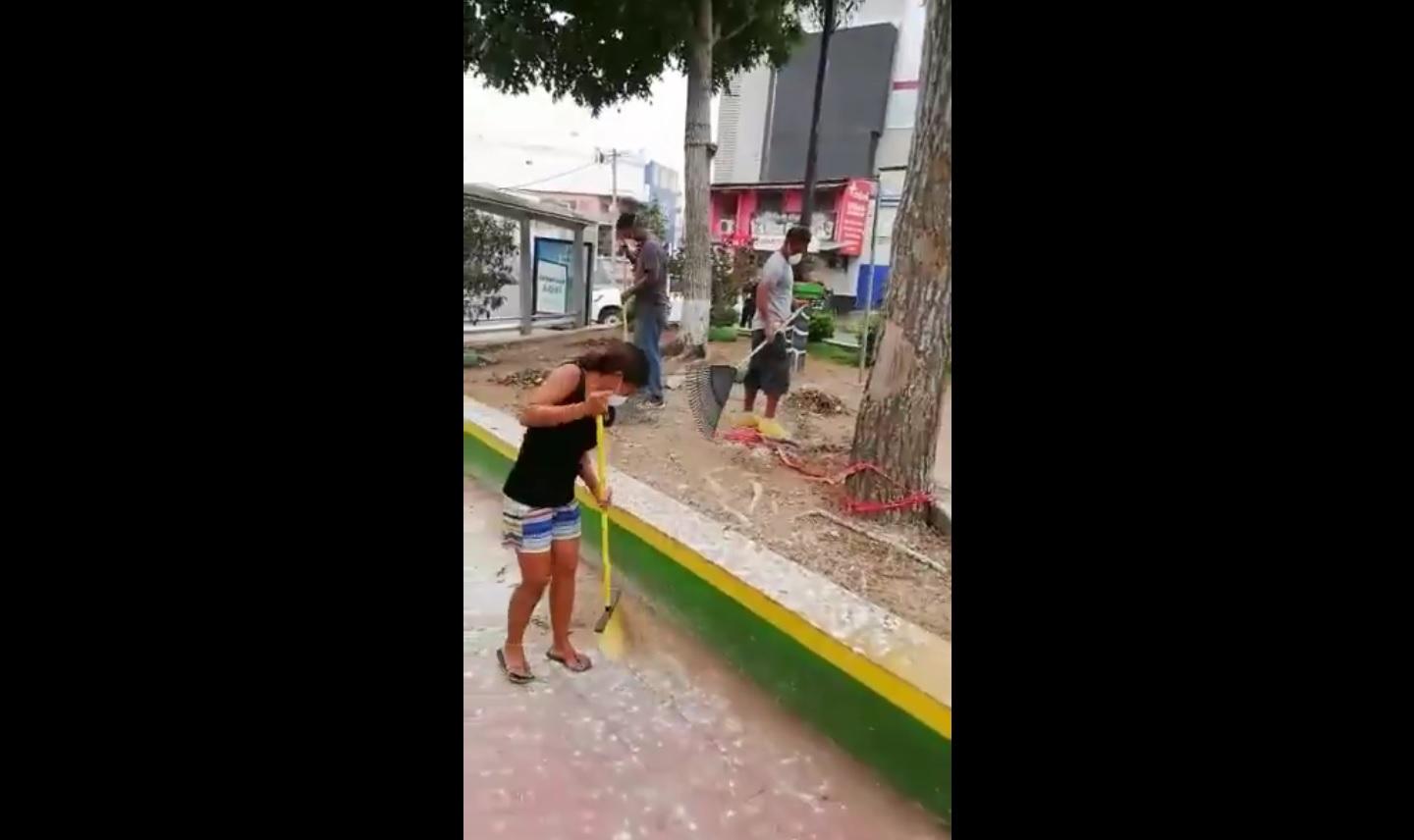 Ponen a infractores de la cuarentena a barrer parque en La Chorrera (Video)