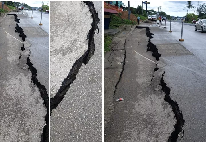 Una fractura en la losa de rodamiento se dio en la carretera Panamá Colón, a la altura de la comunidad Jabón Flecha, área del corregimiento de Sabanitas, este domingo.