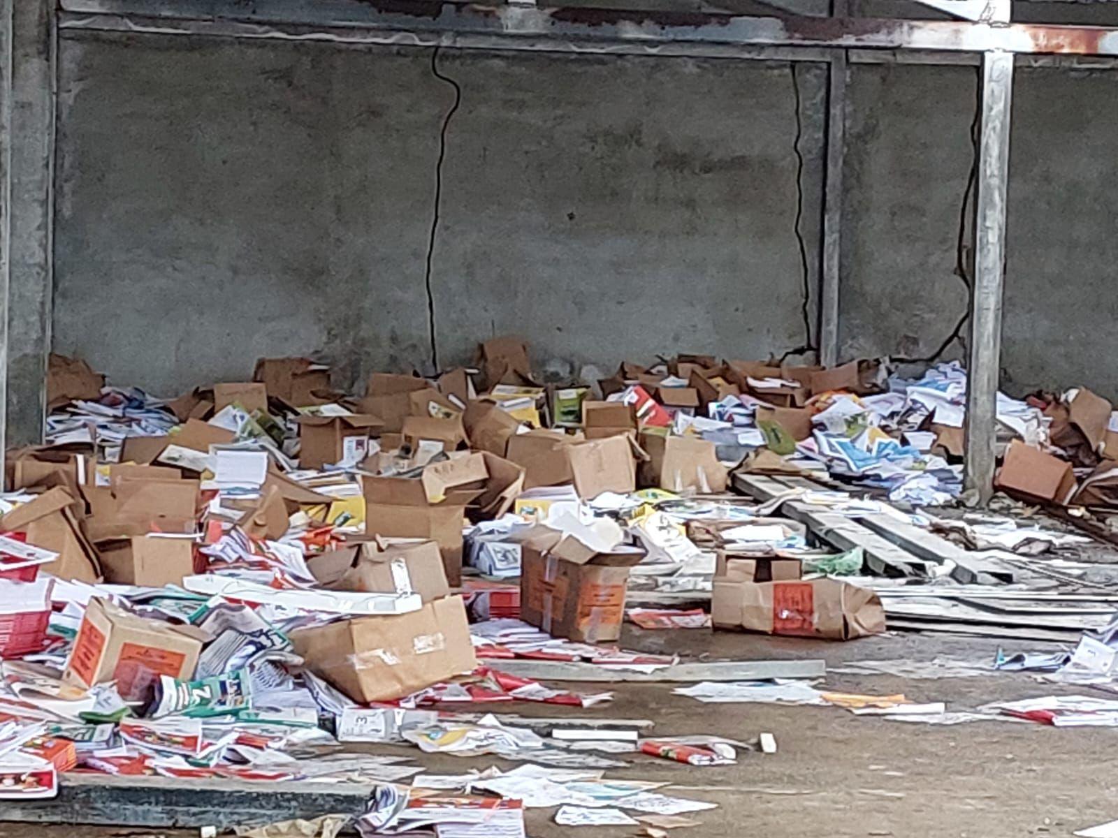 El Ministerio de Educación mandó libros de primaria para distribuir en los centros educativos de Kuna Yala, pero ayer se vio miles de libros desperdigados y deteriorándose en el depósito de Cartí.