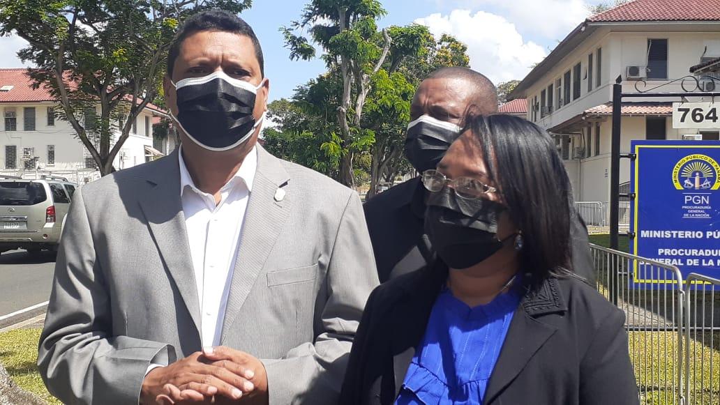 La educadora Nidia Rodríguez Bárcenas y miembros del "Movimiento Arraiján 2000" junto a su representa legal presentaron hoy, lunes, una denuncia penal ante el Ministerio Público contra la ministra de Desarrollo Social, María Inés Castillo y otros altos funcionarios por el caso del escándalo de los albergues administrados por la Secretaría Nacional de Niñez, Adolescencia y Familia (SENNIAF).}