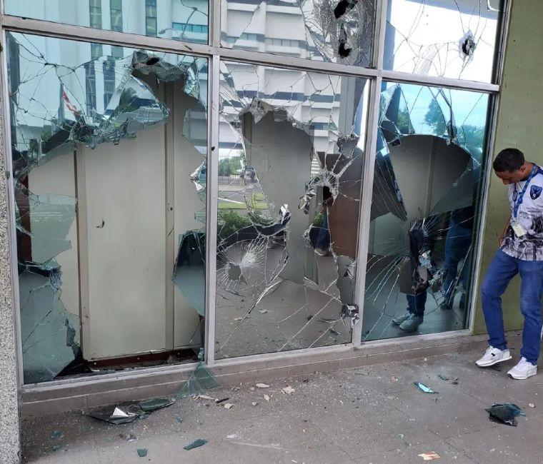 En el edificio de la Contraloría, los sujetos desmontaron las tablas de madera que protegían las instalaciones y procedieron a destruir los vidrios y ventanas de la planta baja donde funcionan oficinas de atención al público.
