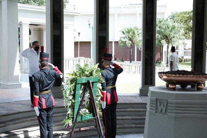 En horas de la mañana de este 9 de enero de 2021, correspondió al mandatario panameño colocar una ofrenda floral en el centro de capacitación Ascanio Arosemena, en donde se encuentra la Llama Eterna, un monumento en honor a los 21 mártires que ofrendaron sus vidas en la lucha por la soberanía nacional.