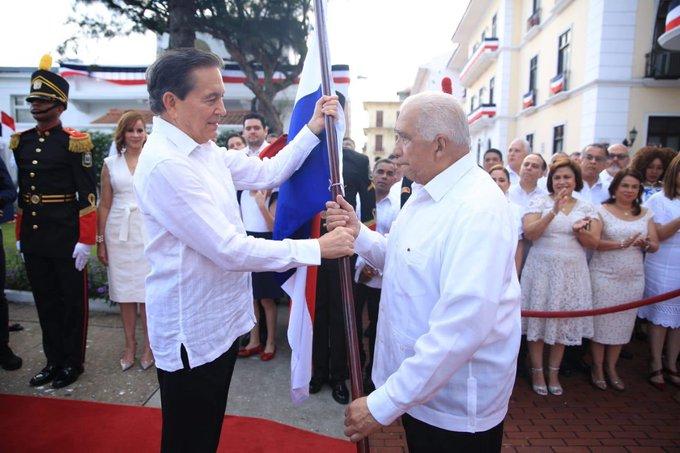El Jefe de Estado izó el Pabellón Nacional y luego lo entregó al doctor y científico, Adán Ríos, abanderado del 3 de Noviembre.