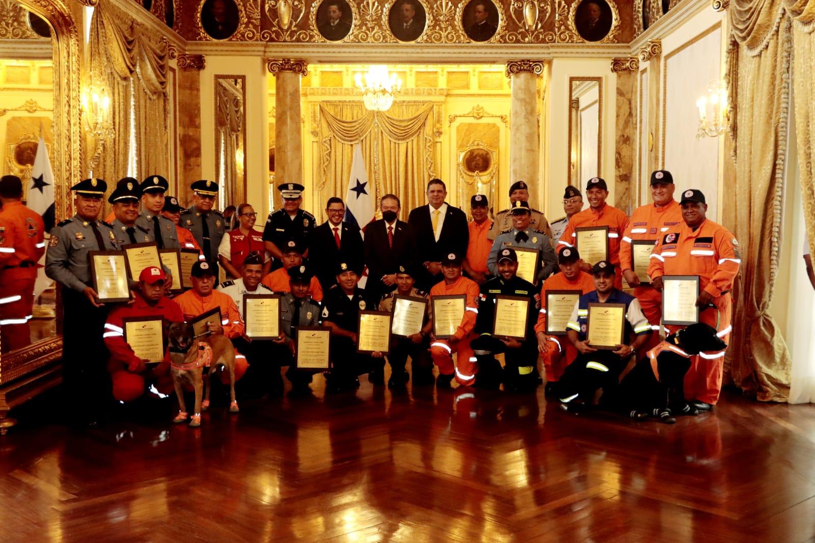 El presidente de Panamá, Laurentino Cortizo Cohen, entregó un reconocimiento a 22 integrantes del Grupo de Búsqueda y Rescate (USAR - Panamá) que participaron en las operaciones de búsqueda, rescate y salvamento de sobrevivientes tras el terremoto de magnitud 7.6 que afectó al sureste de Turquía el pasado 6 de febrero.
