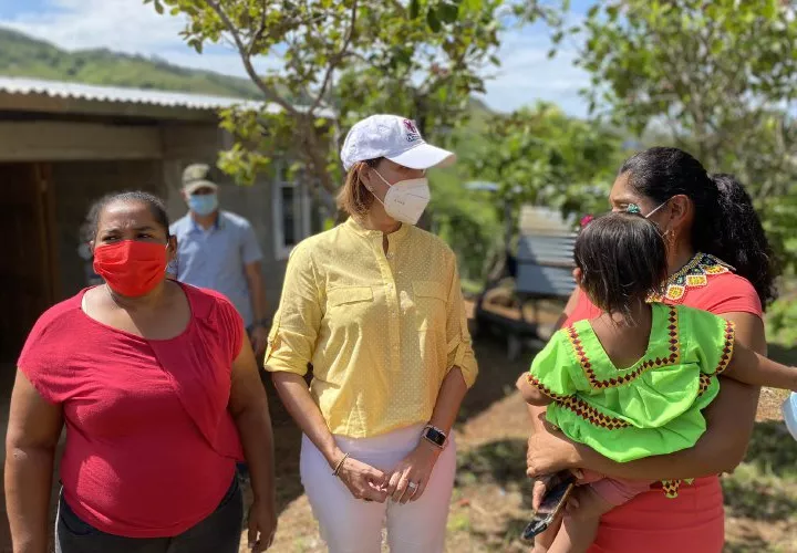 Yazmín Colón de Cortizo, Primera Dama de la República, y su equipo de trabajo visitaron la comunidad de Agua de Salud 2, ubicada en la comarca Ngäbe Buglé, para hacer entrega de 22 viviendas y llevar ayuda social a más de 400 familias del área.
