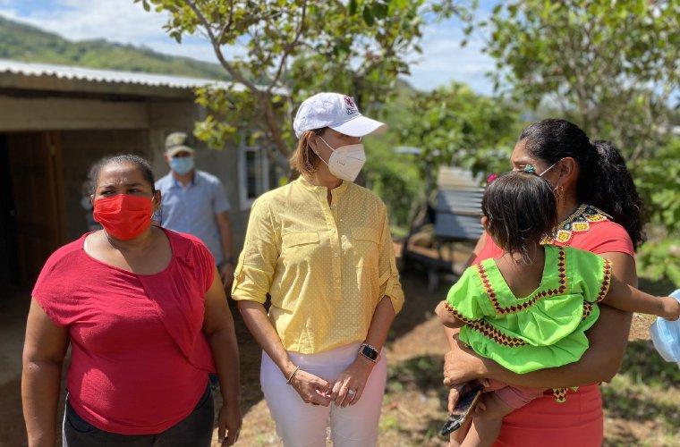 Yazmín Colón de Cortizo, Primera Dama de la República, y su equipo de trabajo visitaron la comunidad de Agua de Salud 2, ubicada en la comarca Ngäbe Buglé, para hacer entrega de 22 viviendas y llevar ayuda social a más de 400 familias del área.