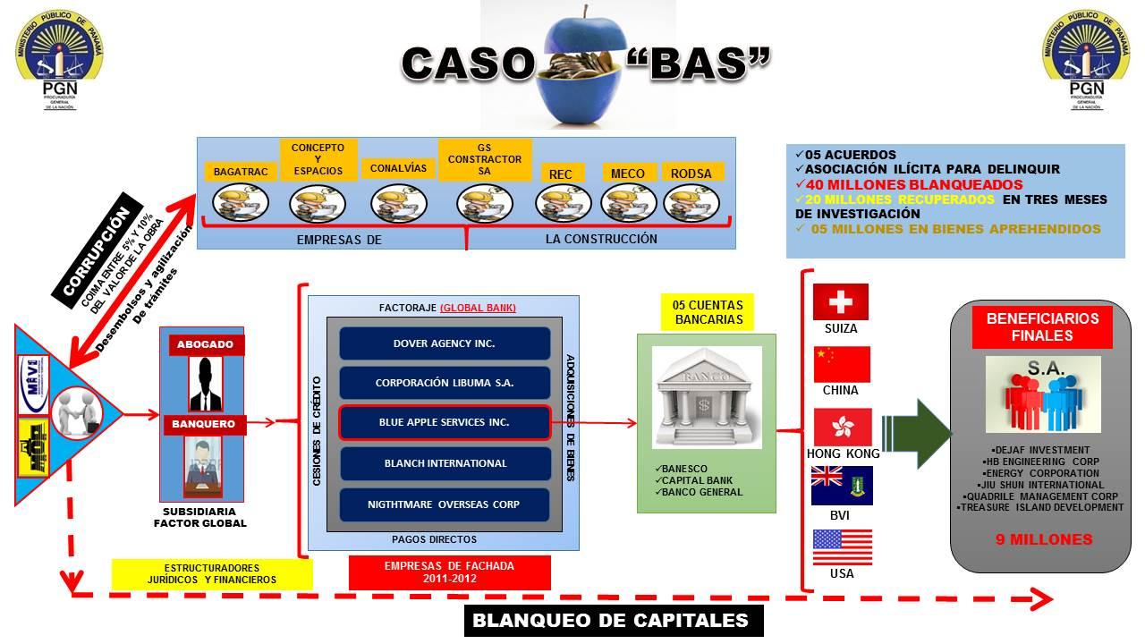 La Procuradora Kenia Porcell repitió ayer lo que ya han publicado los medios sobre el llamado caso Blue Apple Services o "BAS", donde se investigan coimas pagos por constructoras por $40 millones y aparecen mencionados los bancos General, Capital, Global y Banesco.