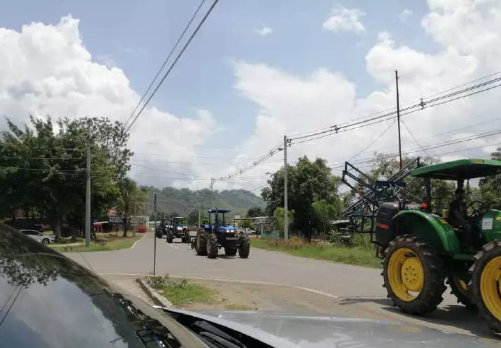 Productores agropecuarios de Chiriquí, Panamá Este y Darién realizaron ayer una caravana con sus equipos, cosechadores y tractores por las calles de David y en Tortí, de Chepo, para exigir el pago de la compensación de $7.50 pendiente de la cosecha 2019-2020.