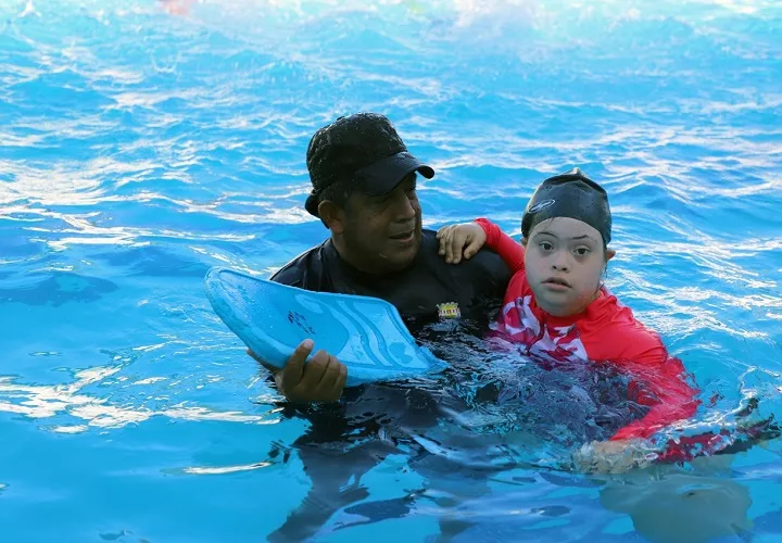 Este es un programa que la Alcaldía de Panamá que la administración del alcalde José Luis Fábrega diseñó para incluir a esta población en las actividades deportivas, en este caso la natación.