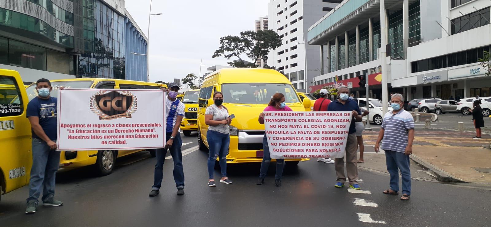 Panamá- Un grupo de conductores de transporte colegiales desarrollan hoy, martes, una protesta frente a la sede del Ministerio de Economía y Finanzas (Mef), en la vía España.
