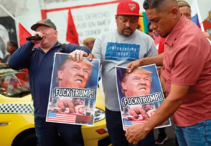 Además, colgaron un cartel con el mensaje “Donald Trump. Enemigo Público de Panamá. ¡Yanki animal, deja el canal!”.