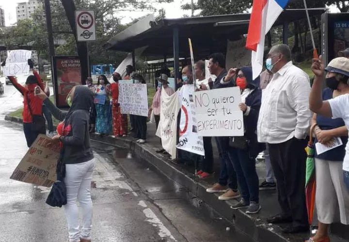 Un grupo de panameños protestó ayer en la vía Ricardo J. Alfaro (Tumba Muerto), en oposición a la vacunación obligatoria contra el Covid-19 y para pedirle al Gobierno del de Panamá informes sobre el contrato con las farmacéuticas Pfizer y AstraZeneca.