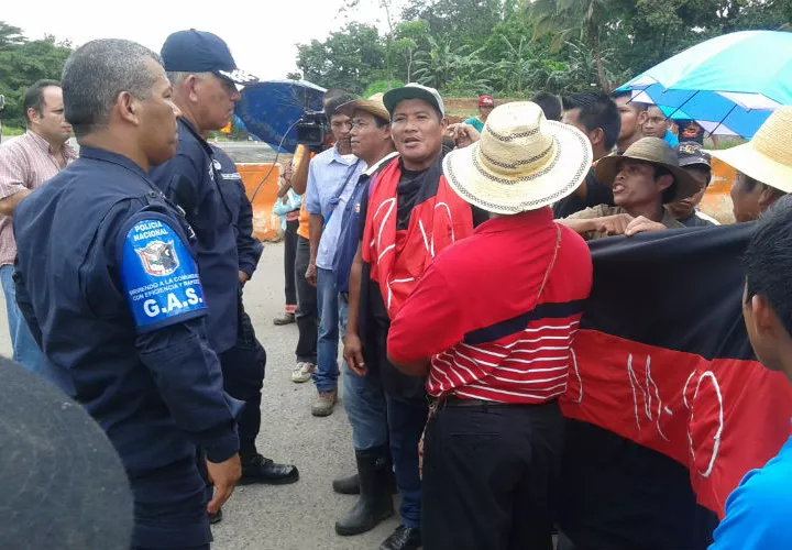 Unidades de la Policía Nacional impiden hoy que un grupo de indígenas de la comarca Ngäbe-Buglé procedan a cerrar la vía Panamericana, a la altura del puente vehicular sobre el río Pacora.