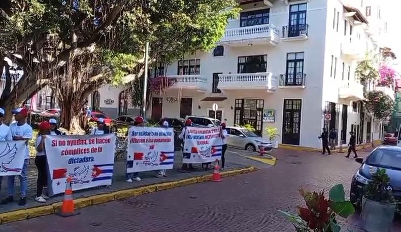 Entre las pancartas también se leía con fuerza una consigna: la extradición de Boris Betancourt. Este ciudadano cubano, identificado como opositor político y activista, está detenido en Panamá y ha sido solicitado por Cuba, aunque el gobierno panameño ya negó su entrega recientemente