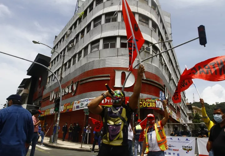 Trabajadores protestaron ayer de manera pacífica en la capital de Panamá y en varias provincias del interior en contra de reformas laborales propuestas para reglamentar las paralizaciones de contratos de los empleados que debate la Asamblea Nacional, en medio de la pandemia por el coronavirus.