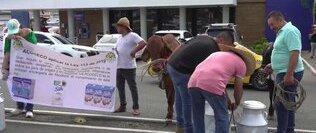 En solidaridad, ganaderos de carne y leche de Panamá Oeste se sumaron a la protesta. La rebaja en el precio de venta por litro de leche y la importación de productos lácteos sucedáneos están golpeando el frágil bolsillo de los productores de leche e