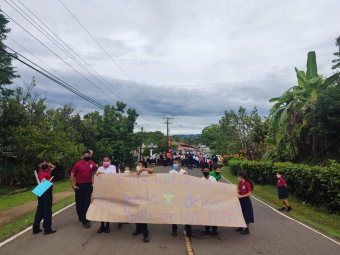 Los quejosos con pancartas en manos exigen una respuesta a la empresa eléctrica por los apagones y fluctuaciones de voltaje que no cesan en la provincia de Panamá Oeste.