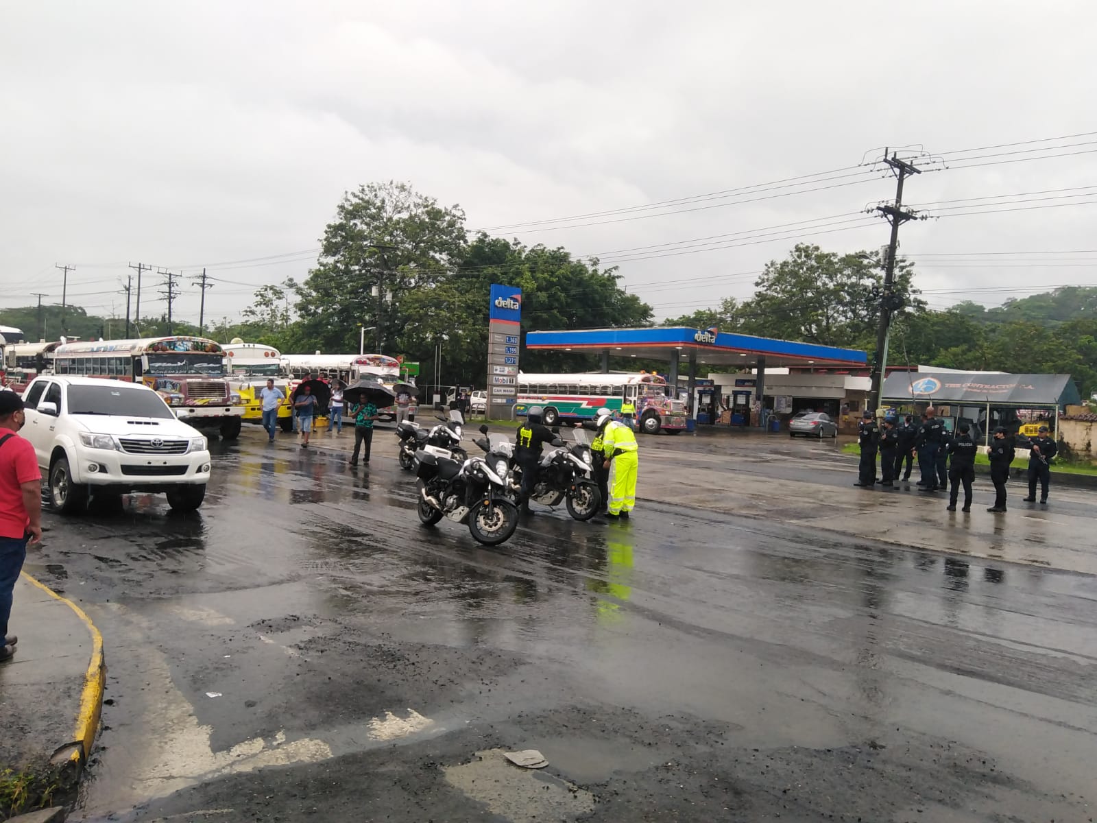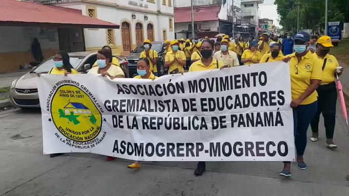 Los primeros que salieron a protestar fueron los docentes que desde las 6:00 a.m. Se ubicaron en los predios de la calle 10, avenida Central, frente a la iglesia San José, de donde partieron en una caminata hasta la entrada de Colón.