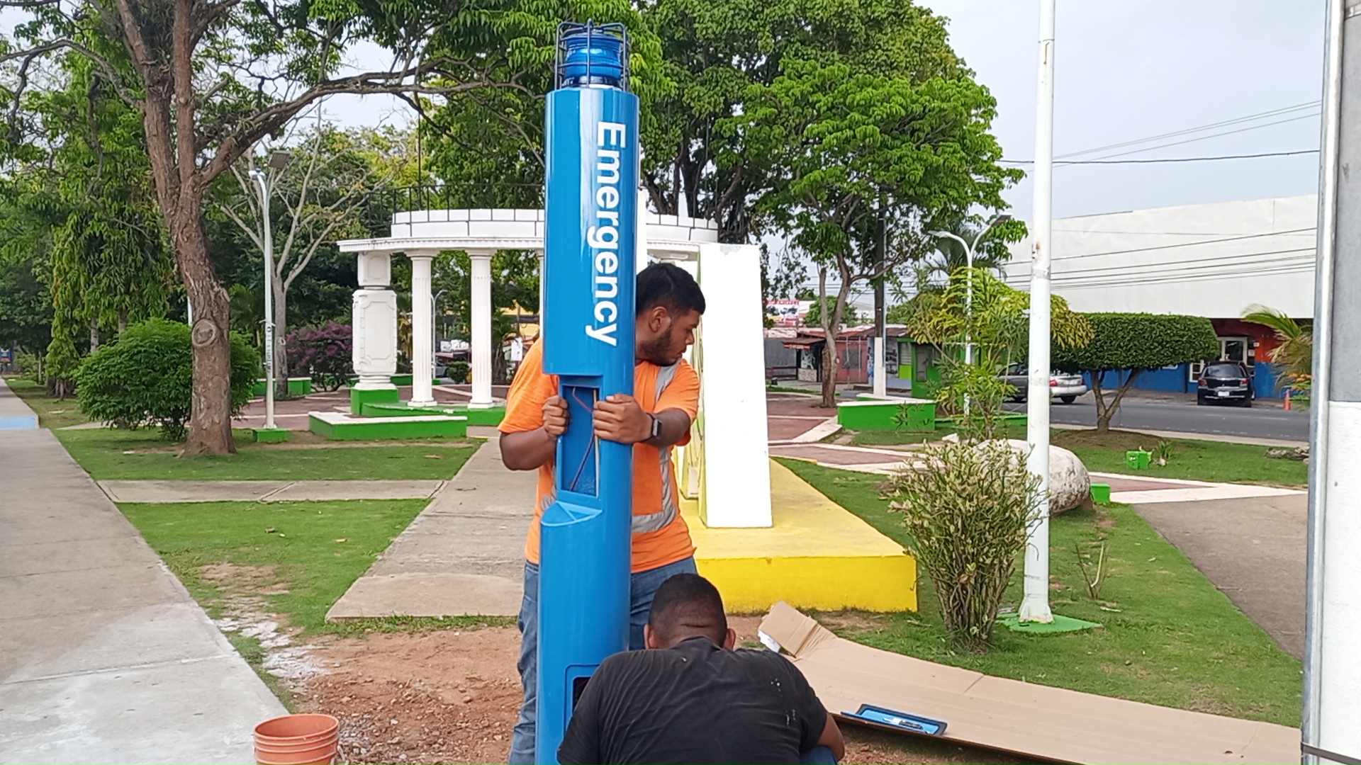 Se trata de estructuras de color celeste, de unos tres metros de alto, los cuales cuentan con un botón rojo y conectadas al centro de operaciones municipales.