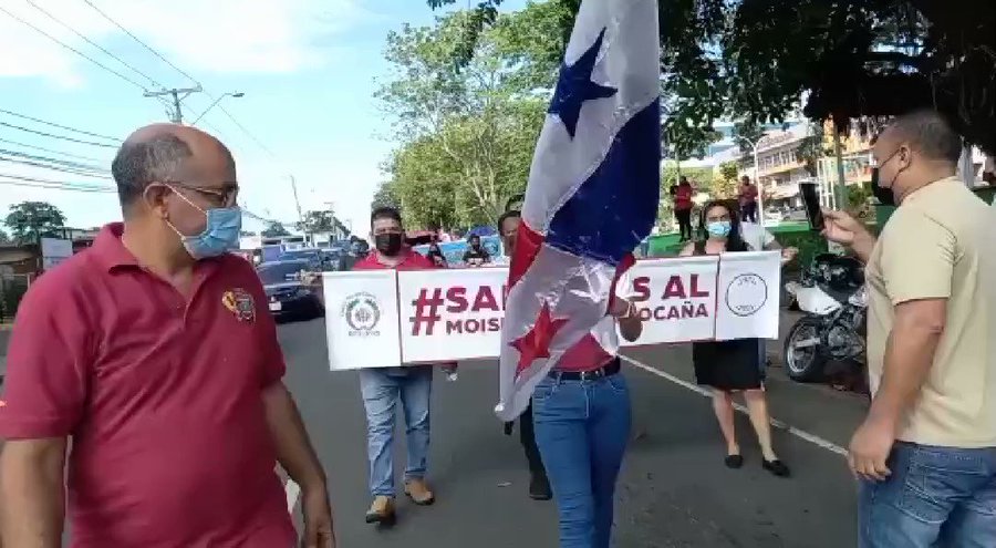 Los manifestantes se dirigen hacia la sede regional del Ministerio de Educación para entregar un pliego de peticiones con el objetico que reinicien los trabajos de rehabilitación en una de los principales centros educativos de Panamá Oeste.