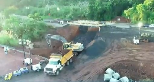 El día martes, durante los trabajos de reparación de la carretera se extrajo parte de la tubería de metal corrugado, totalmente destruida por la corrosión.