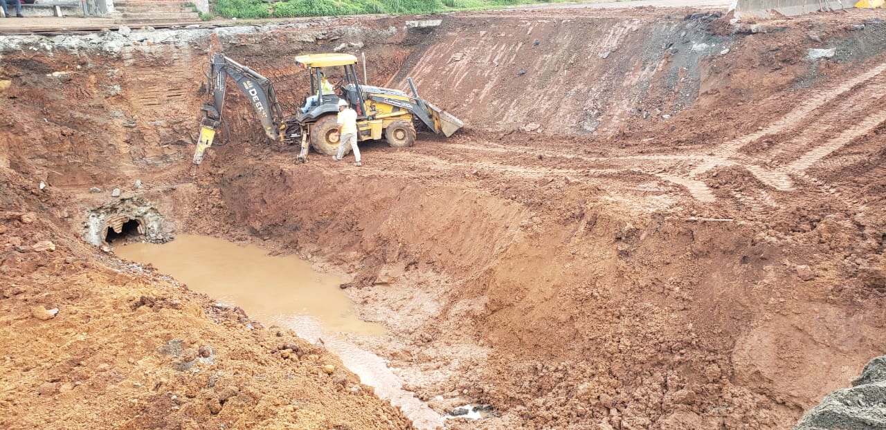 La noche del jueves culminaron los trabajos de colocación de la línea de tuberías de hormigón de 1.20 metros de diámetro y se procedió a realizar el proceso de relleno y compactación.