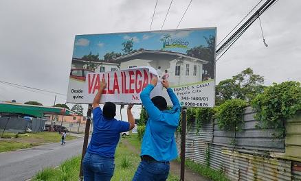 Ayer lunes, se procedió a marcar como 'valla ilegal' unas 30 estructuras en los corregimientos de Barrio Colón, Barrio Balboa, Puerto Caimito y Guadalupe.