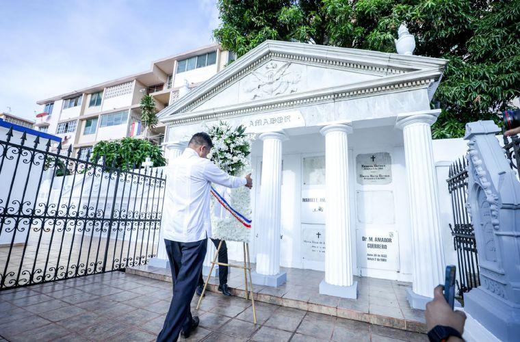 El acto fue encabezado por el director de Protocolo y Ceremonial del Estado y embajador Diomedes Carles, quien colocó la ofrenda floral ante el mausoleo del primer presidente de Panamá, Manuel Amador Guerrero.