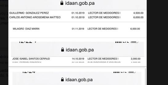 La planilla que revela el Idaan corresponde a la de diciembre de 2019.