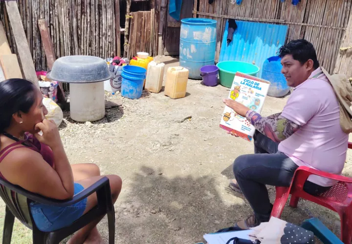 Mientras en la población de Narganá, el personal de saneamiento ambiental realizó visitas domiciliarias a familias gunas donde las orientaron en medidas de prevención contra la malaria, utilizando herramientas de educación.