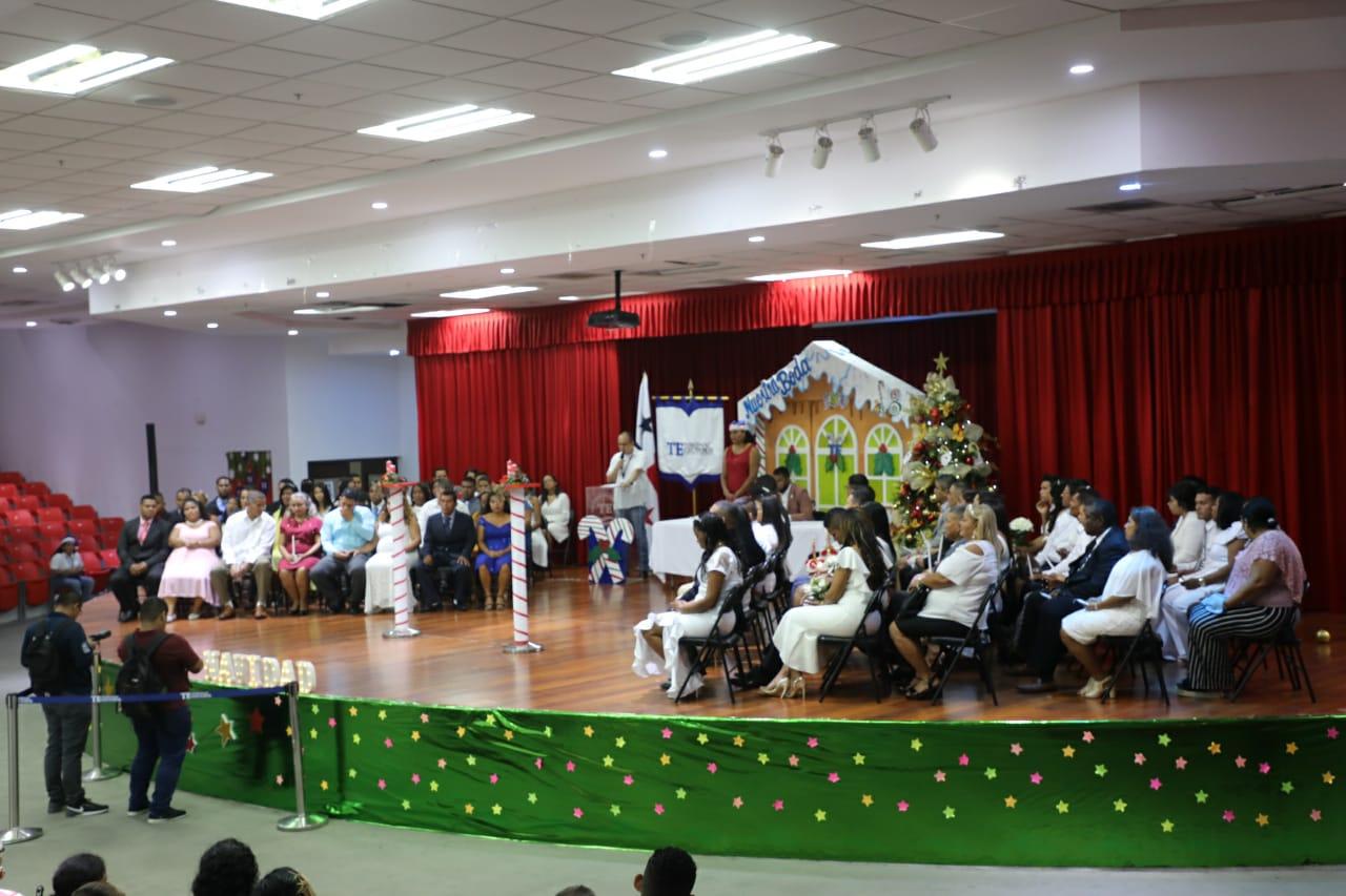 Unas 42 parejas se dieron el mutuo sí durante un matrimonio masivo celebrado en el Centro Educativo Monseñor Francisco Beckmann de Las Cumbres, este domingo 15 de diciembre, en medio de la alegría que predomina en esta época navideña.