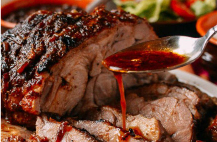 Entre sus ingredientes, el chef nos indicó 6 kilos de pernil, vino blanco, salsa inglesa, pimienta, aceite de oliva, azúcar, mantequilla, salsa de soya, y hojas de laurel.