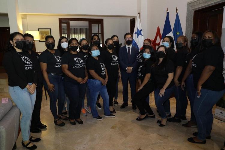El embajador de Francia en Panamá, Arnaud de Sury, y la presidenta de la Fundación Calicanto, Hildegard Vásquez, entregaron una certificación a cada una de las 15 agentes de cambio, participantes del proyecto “Agentes de Cambio para la Prevención de la Violencia de Género” de la Fundación Calicanto