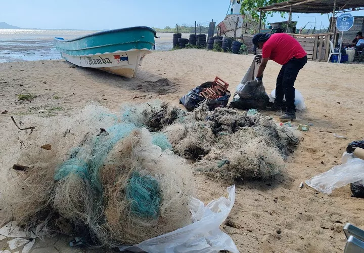 Lucía Ramírez, jefa de la unidad ambiental sectorial de la ARAP, dijo que durante un operativo de limpieza realizado en esta zona de la provincia de Panamá Oeste se recolectaron varias libras de redes en desuso.