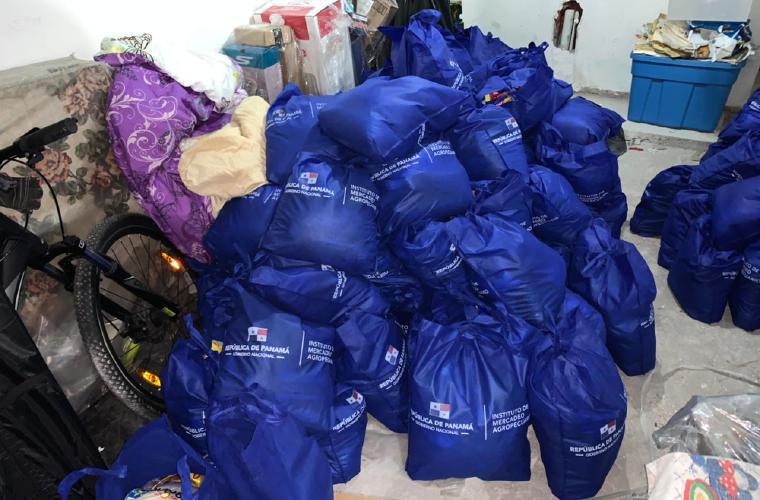 En tanto la tarde de ayer lunes fueron trasladados en camiones, bolsas de comida del Plan Panamá Solidario que fueron halladas en una residencia en San Francisco, del Edificio Avesa al Ministerio de Mercadeo Agropecuario.