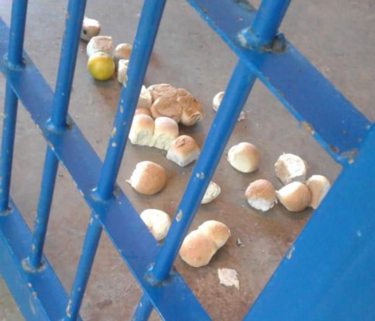 Los privados de libertad desde ayer empezaron a lanzar panes, frutas y otros alimentos a los pasillos del pabellón, a modo de protesta. Le exigen a las autoridades una mejor calidad de la alimentación.
