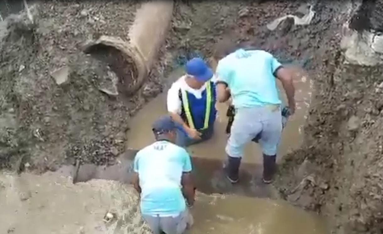 Reparan rotura en tubería de 24 pulgadas a la altura de Villa Lucre (Video)