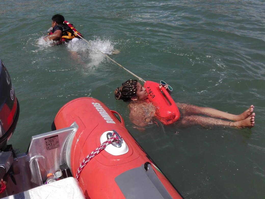 Personal del Cuerpo de Bomberos de Panamá, efectuó el rescate de una mujer, la cual había quedado atrapada en un rompeolas en Playa El Palmar, distrito de San Carlos.