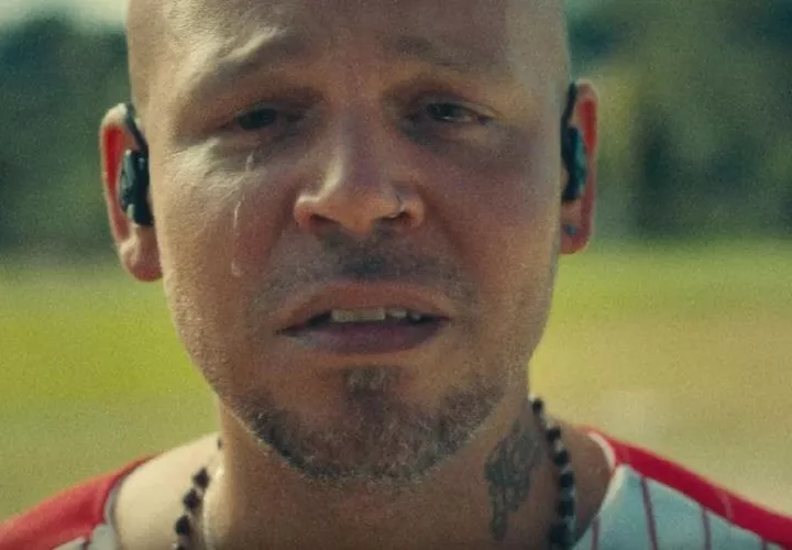 El pequeño -que había sido grabado anteriormente por Residente pero solo de espaldas- aparece casi al final del clip luciendo una camiseta de béisbol idéntica a la que usa su padre, a quien le da un fuerte abrazo.