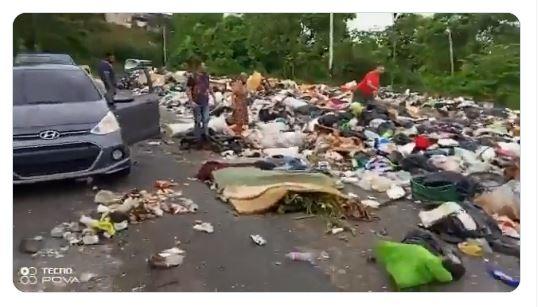 Residentes cierran calle de El Poderoso asqueados por tanta basura